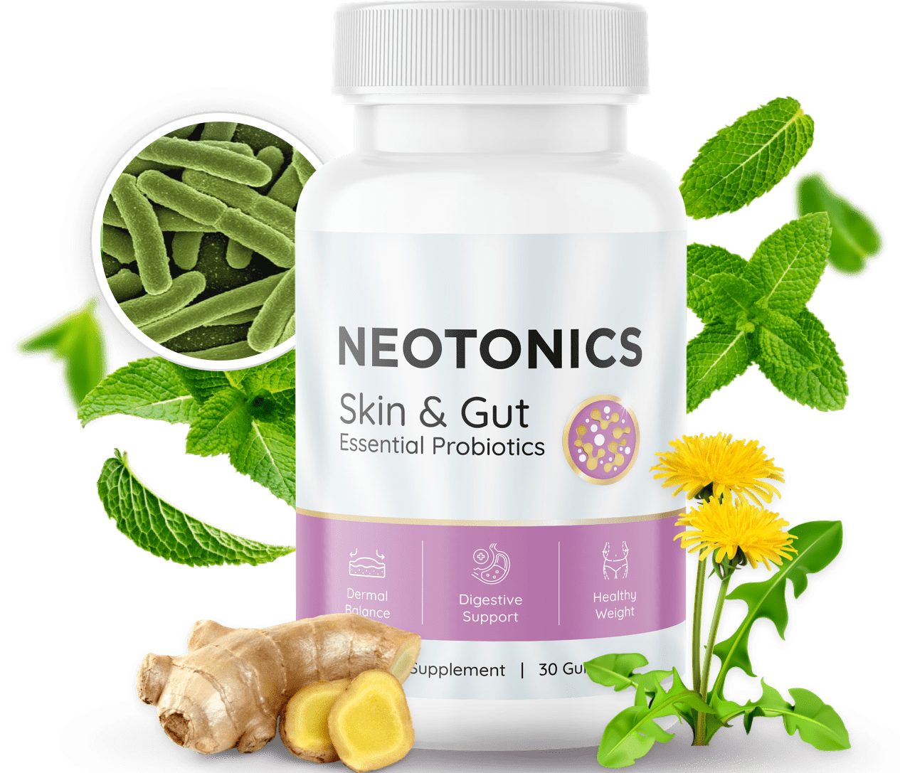 By nourishing your microbiome with a potent blend of 500 million probiotics and soothing botanicals like Babchi and Lion’s Mane, Neotonics helps you: